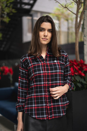 CAMISA FORTROP COLOR NEGRO CUADROS COLOR ROJO Y BLANCO TIPO DE TELA FRANCESA NOTA: Las...