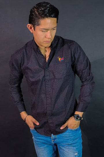 CAMISA CABALLERO SR. GALLO COLOR NEGRO ESTAMPADO PUNTOS TELA 50% ALGODÓN Y 50% POLIÉSTER NOTA:...