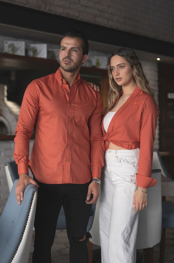 CAMISA FORTROP COLOR CHEDRON JASPEADA TIPO DE TELA FRANCESA NOTA: Las medidas indicadas en la...