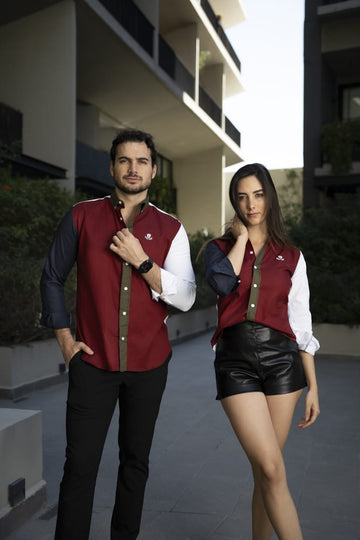 CAMISA CABALLERO Y DAMA FORTROP COLOR TINTO, MANGAS COLOR AZUL MARINO Y BLANCO; ALETILLA Y...