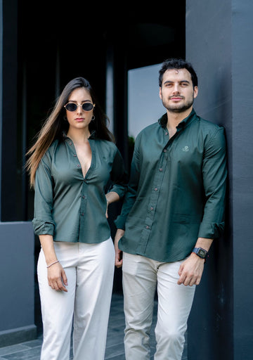CAMISA CABALLERO Y DAMA FORTROP COLOR VERDE LISA TELA 100% ALGODÓN-OXFORD NOTA: Las medidas indicadas...