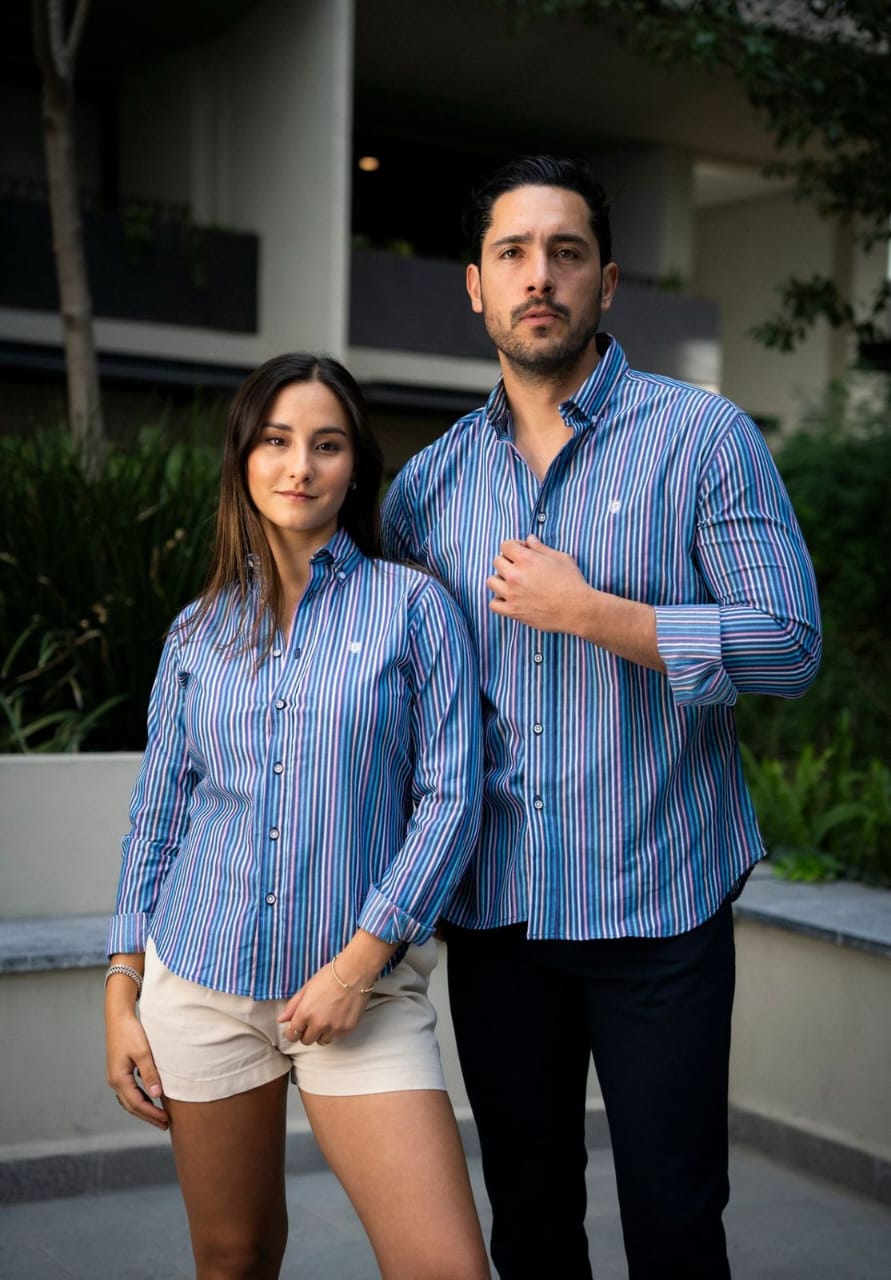 CAMISA CABALLERO Y DAMA FORTROP COLOR AZUL, RAYAS MULTICOLOR