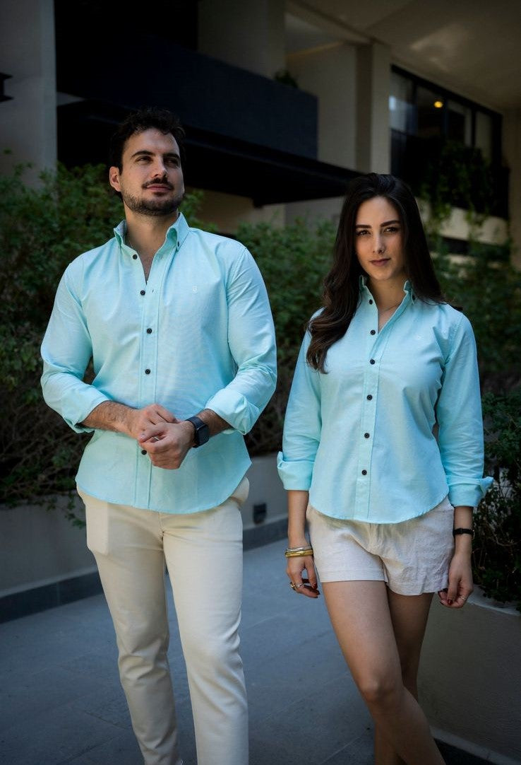 CAMISA CABALLERO Y DAMA FORTROP COLOR AZUL CLARO LISA