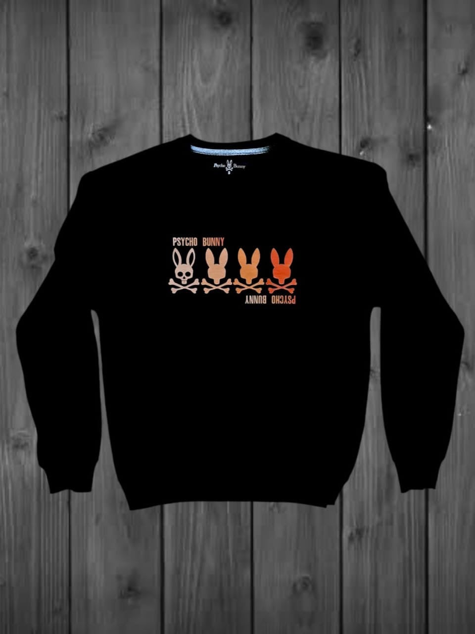 SUDADERA CABALLERO COLOR NEGRO, ESTAMPADO CONEJO MULTICOLOR