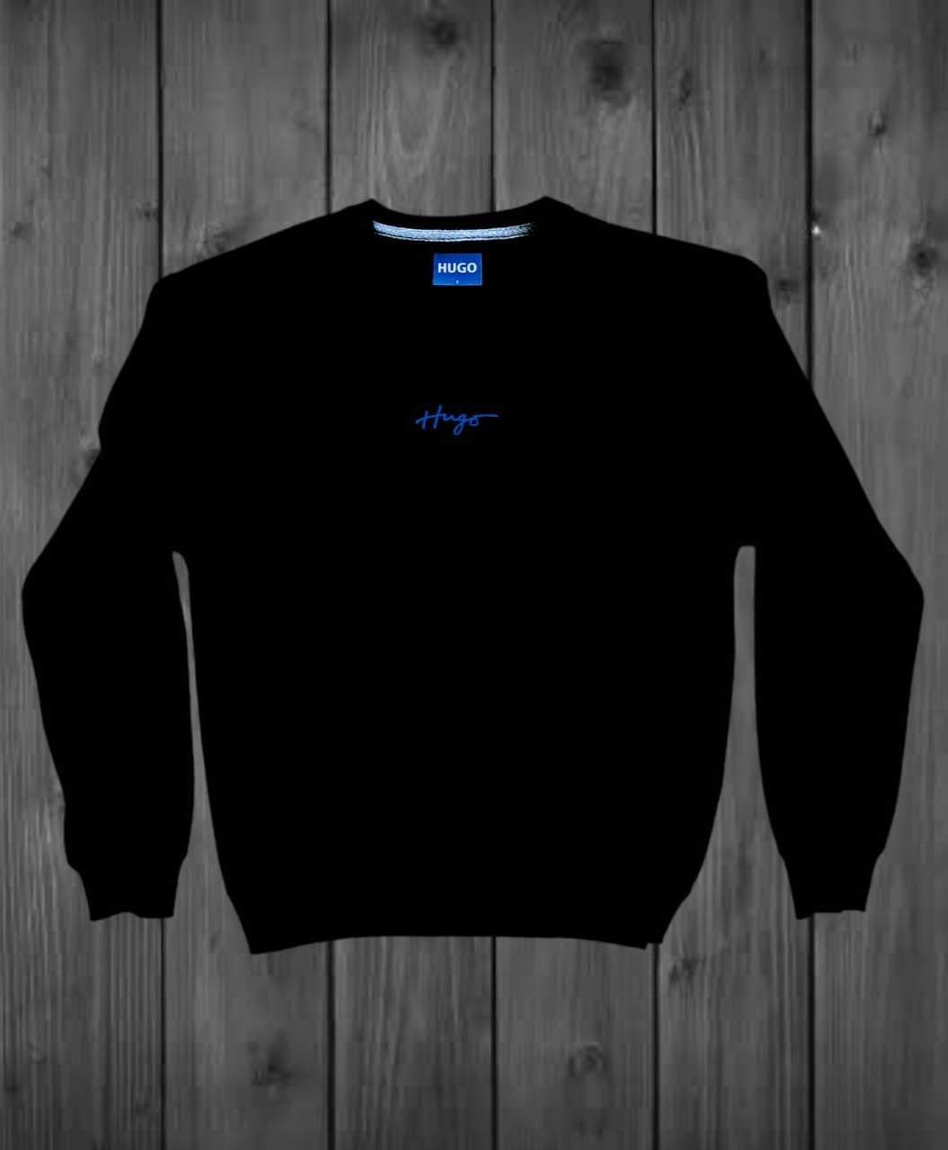 SUDADERA CABALLERO COLOR NEGRO, ESTAMPADO CO LETRAS PEQUEÑAS CURSIVAS COLOR AZUL
