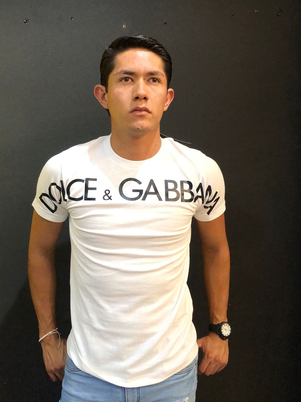 CAMISETA CABALLERO COLOR BLANCO, ESTAMPADO LETRAS HORIZONTALES COLOR NEGRO