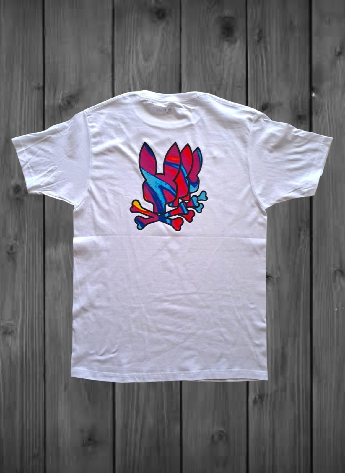 CAMISETA CABALLERO COLOR BLANCO; ESTAMPADO CONEJO MULTICOLOR