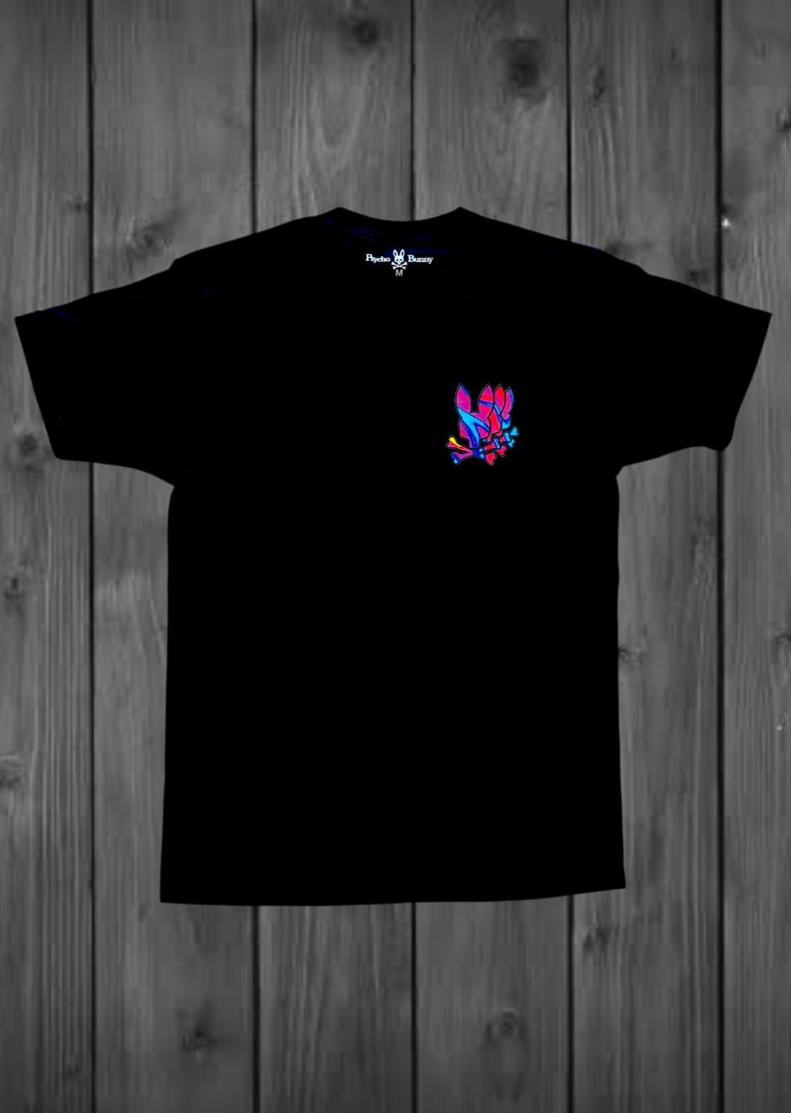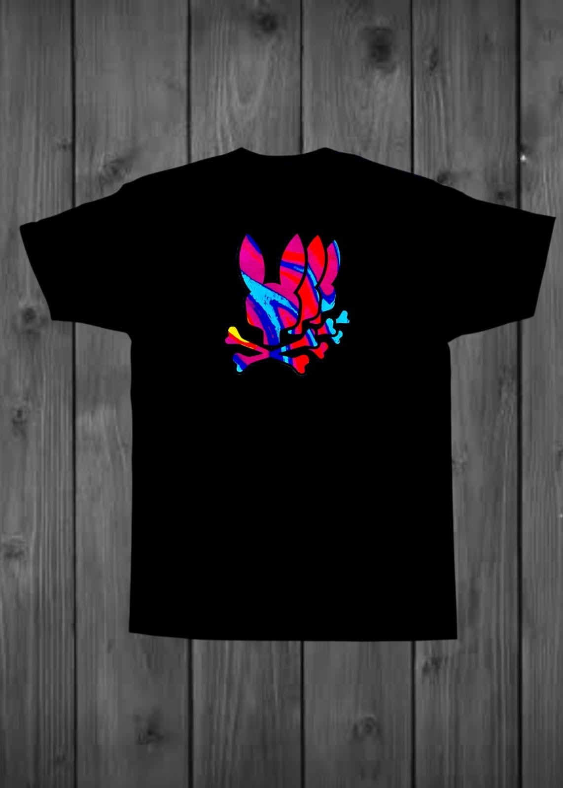 CAMISETA CABALLERO COLOR NEGRO; ESTAMPADO CONEJO MULTICOLOR