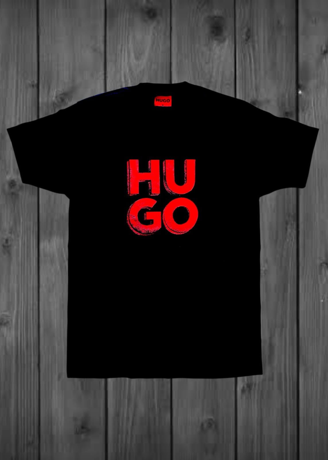 CAMISETA CABALLERO COLOR NEGRO; ESTAMPADO LETRAS COLOR ROJO