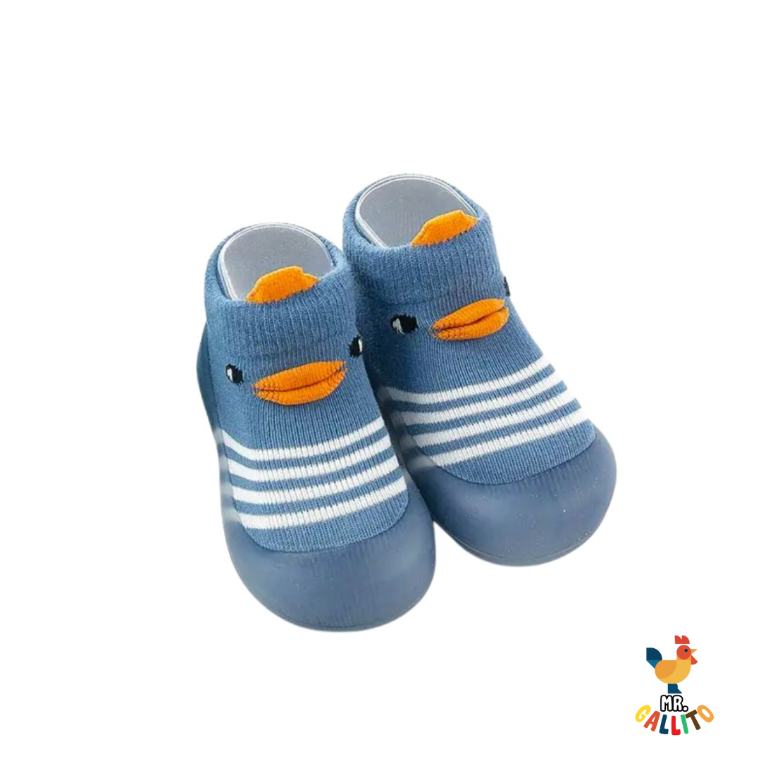 ZAPATO ANTIDERRAPANTE PARA BEBÉ ANIMALITOS COLOR AZUL Y "PATITO" COLOR AZUL